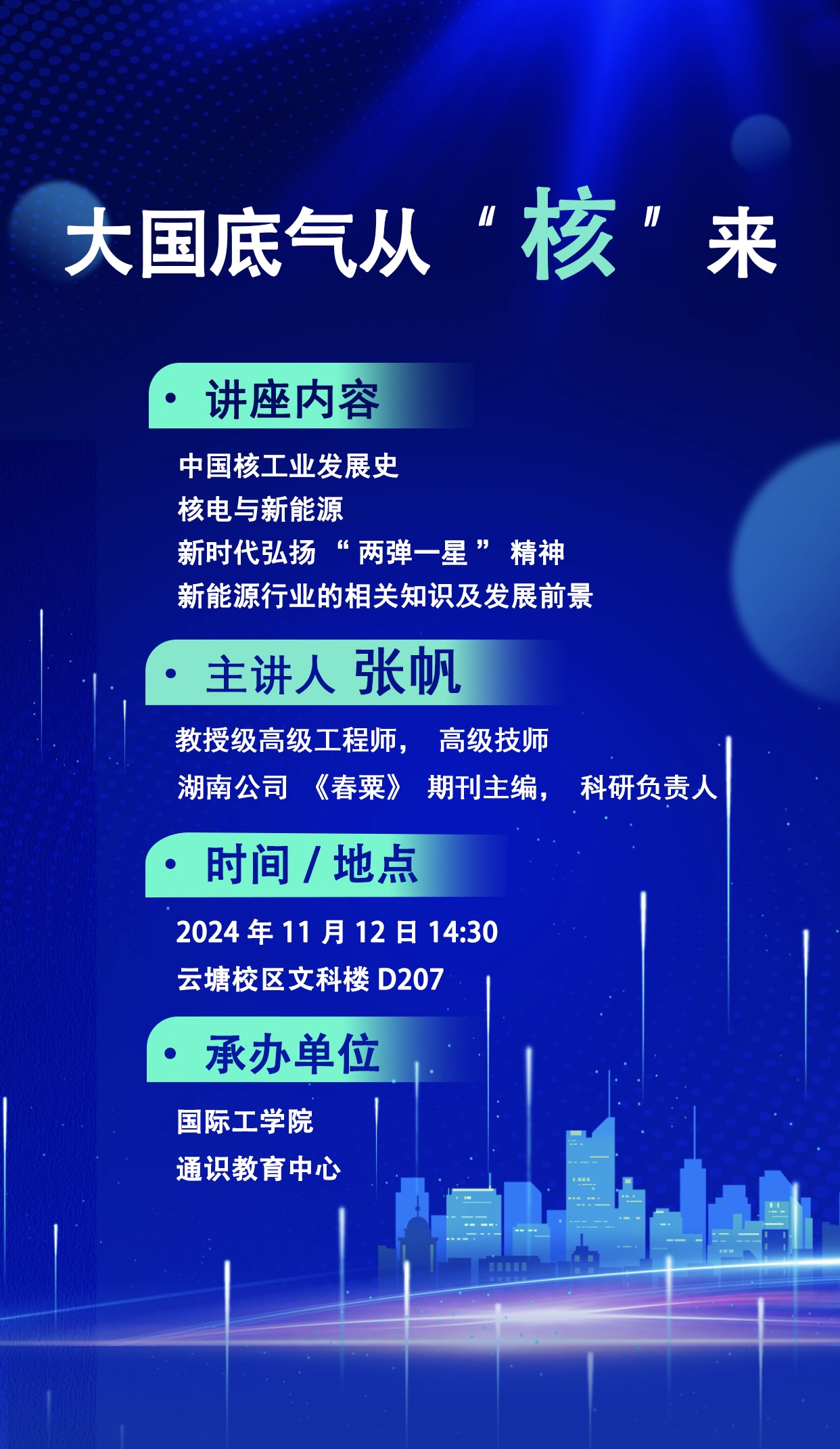 主要内容:在我国明确提出2030年“碳达峰”与2060年“碳中和”目标的背景下,中国新能源行业发展的前景如何?核能发电安全可靠吗?新能源行业是否值得同学们作为就业选择?本次讲座将从多个维度,详细向同学们介绍中国新能源行业的相关知识及发展前景,并对同学们感兴趣的话题进行互动解答。鼓励同学们在学习和工作过程中,能够为中国新能源的发展做出贡献。