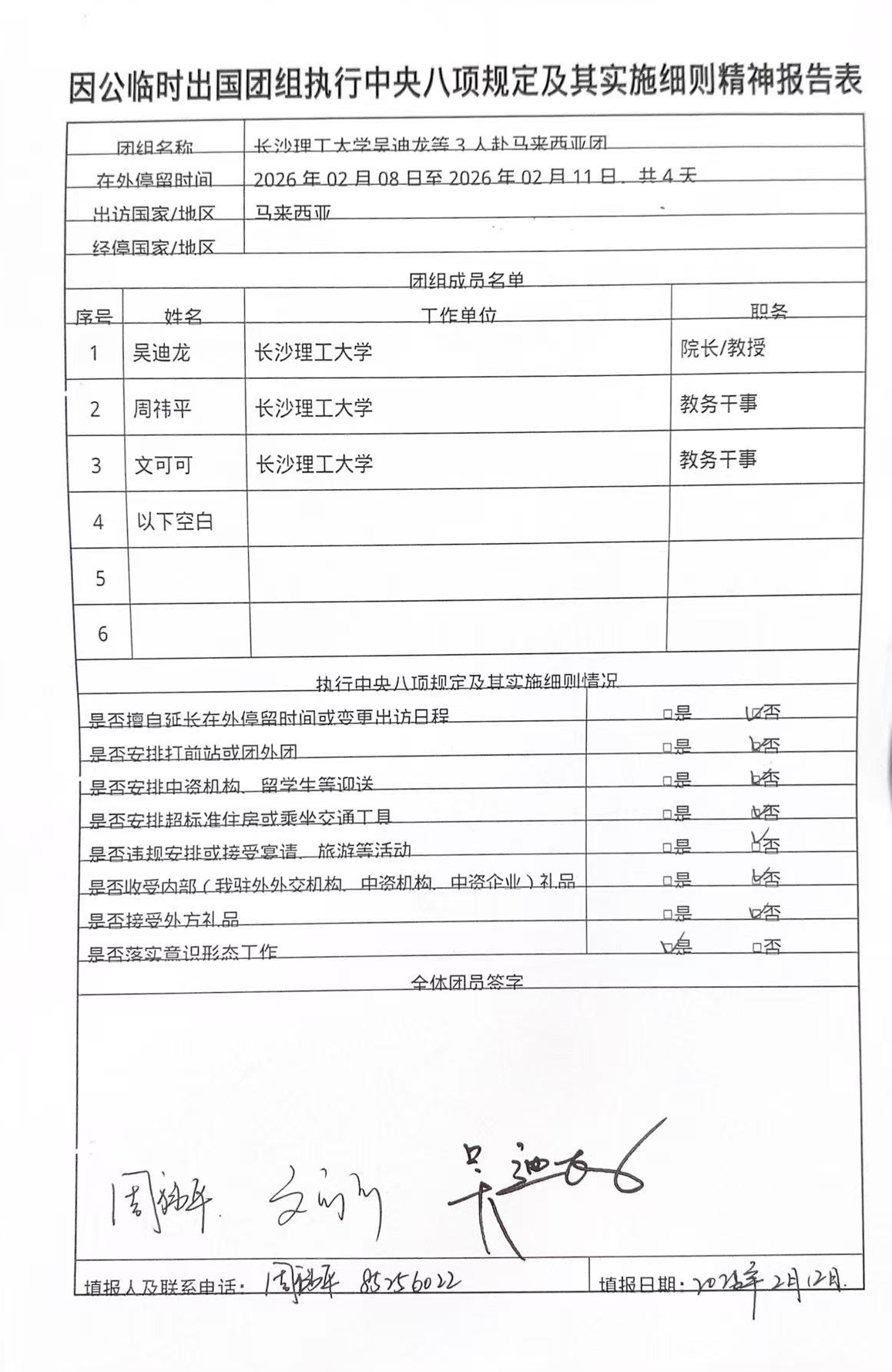 三、《因公临时出国团组执行中央八项规定及其实施细则精神报告表》