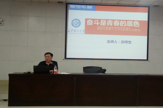 谈校长从放眼当今大时代、当代青年大学生素描、基于未来使命的大学生责任应对三个方面围绕大数据时代、大变革时代、大发展时代、大调整时代,大学生自立、自律、自强,让学习成为永恒,让创新成为动力,让担当成为使命,让至善成为追求等告诫大学生勤奋学习,不懈奋斗,谱写人生的精彩、事业的成功、无悔的青春,让勤奋学习成为青春飞扬的动力,让增长本领成为青春搏击的能力。