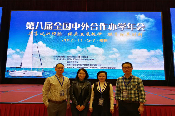 11月5日-7日,以教育部国际合作与交流司为会议支持机构,厦门大学中外合作办学研究中心发起、牵头并联合福建省教育厅、中国高等教育学会中外合作办学研究会主办,福州大学、福州墨尔本理工职业学院、泉州理工职业学院承办的第八届全国中外合作办学年会在福州市隆重举行。国际学院院长陈瑜、副院长秦卫星、国际交流处办公室主任杨欣、国际学院中外合作办学项目秘书唐宏敏一行出席大会,并与兄弟院校代表进行了充分交流。