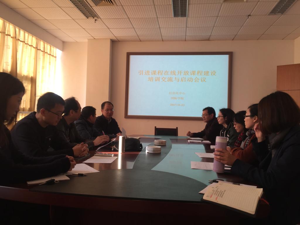 为加快引进课程在线开放课程建设步伐,全面共享外方优质教育资源,更好助力学校国际化人才培养,11月23日上午,国际学院携手校信息化中心在云塘校区图书馆923会议室召开中外合作办学引进课程在线开放课程建设培训交流与启动专题会议。校信息化中心负责在线开放课程建设与管理的3位老师,来自交通运输工程学院、土木工程学院、水利工程学院承担第一批8门引进课程的5位导读助教老师,以及国际学院教务管理人员参加了会议。会议由国际学院副院长秦卫星主持。