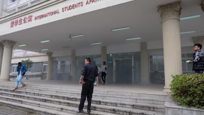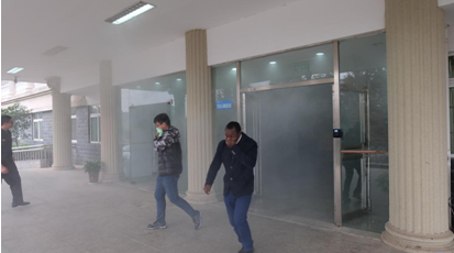 讲座结束后,在留学生公寓进行了消防实战演习。本次消防实战演习主要包括紧急疏散、灭火演练、消防知识普及、消防安全检查等内容。国际学院的老师们在宿舍楼道内点燃烟雾,并拉响警报,随着消防警报响起,同学们用湿毛巾捂住口鼻,有秩序的弯腰下楼梯,并根据各自所在的位置迅速寻找最近的消防逃生通道有秩序的撤离至公寓外安全地点。