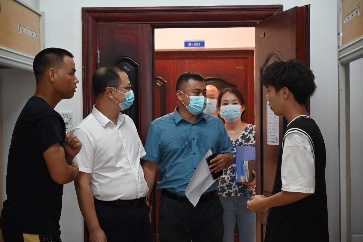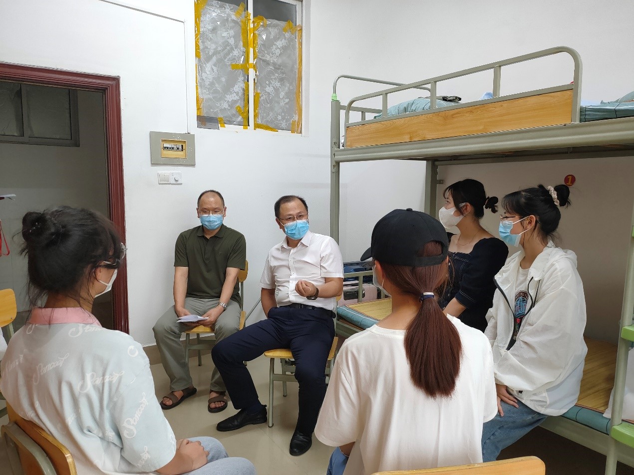 新学期伊始,为更好地了解新生入学情况,8月28日下午,国际工学院院长吴迪龙、院党总支副书记兼副院长乔法光、副院长秦卫星、黄月华、吴悠,全体学工办老师深入新生宿舍,探望2022级新生。