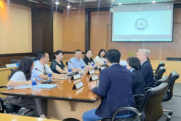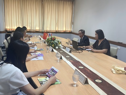12月19日上午,在Thapanut Udomsree博士和Janejira Sae-Tung主任的陪同下,代表团访问East Asia University。副校长兼工程学院院长Suchai Pongpakpien博士、文学院院长Kulchalee Thupatemee博士及教育项目主任Kesinee Chiwpreecha博士热情接待了代表团。双方围绕培养模式、短期项目及师生交流等议题展开讨论,并达成高度合作意向。随后,代表团前往Kasem Bundit University,与副校长Suwat Suwandee博士及国际学生事务办公室主任Supapron Sukavas会谈。双方就师生交流及夏令营项目达成初步合作共识。下午,代表团在当地Suwanplubpla Pittayakom中学进行招生宣讲,并与校长进行会谈,双方就夏令营及选拔优秀毕业生来校深造的合作细节进行了深入交流。
