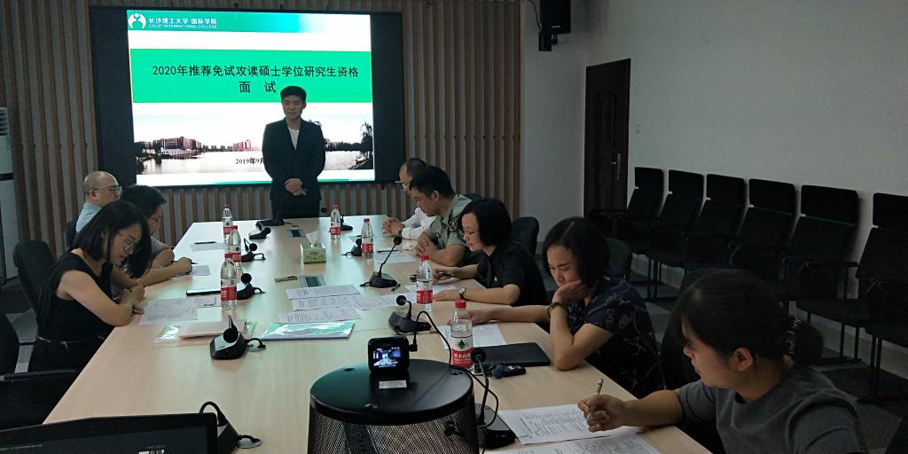 国际学院于2019年9月11日下午在新能源大楼一栋416会议室举行2020届本科毕业生研究生推免面试答辩。在学生自我介绍、成绩汇报、专家提问等环节后,根据学校要求的思想政治品德、学业成绩和科研创新潜质与专业能力三个方面进行了综合考评,最后同意推荐汤乐轶夫同学作为2020届本科生免试攻读研究生候选人并报学校审批。