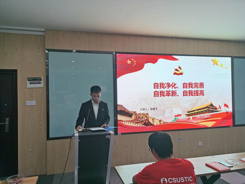 随后比赛正式开始,选手们紧紧围绕学习贯彻习近平新时代中国特色社会主义思想,选取革命英雄、爱国主义、先进典型、身边党员等素材作为党课内容,主题突出、内容鲜活、形式生动。徐维平同学通过对党的十八大以来中央从严治党相关情况的介绍,强调了永葆党的先进性与纯洁性的重要性。梁澳昕同学阐述了在生活中如何切实做到不忘初心,牢记使命。汤乐轶夫同学介绍了优秀毕业生党员吴杨书帆同学的先进事迹,并号召大家以优秀党员作为良好榜样。