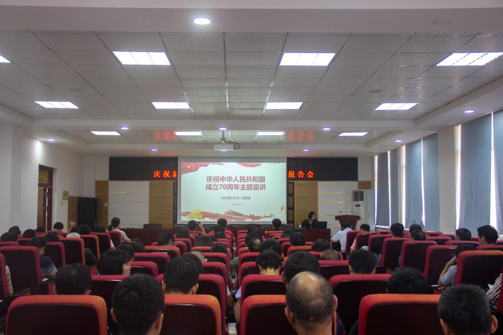 付嫦娥从新中国新湖南70年发展成就辉煌、新中国新湖南70年发展经验弥足珍贵、对历史最好的纪念就是创造新的历史三个方面,为大家做宣讲报告。她指出建立中国共产党、成立中华人民共和国、推进改革开放和中国特色社会主义事业是五四运动以来我国发生的三大历史性事件,是近代以来实现中华民族伟大复兴的三大里程碑。新中国成立的70周年,是中国经济实力和综合国力大幅提升的70年,是人民生活水平极大改善的70年,是社会文明程度显著提升的70年,是我国国际地位空前提高的70年。中国道路是成功密码,科学理论是行动指南,改革开放是关键一招,人民群众是力量源泉,党的领导是根本保证。付嫦娥强调,对历史最好的纪念就是创造新的历史,对新中国成立70周年最好的庆祝,就是重整行装再出发,把新时代湖南改革开放和现代化建设事业不断推向前进。