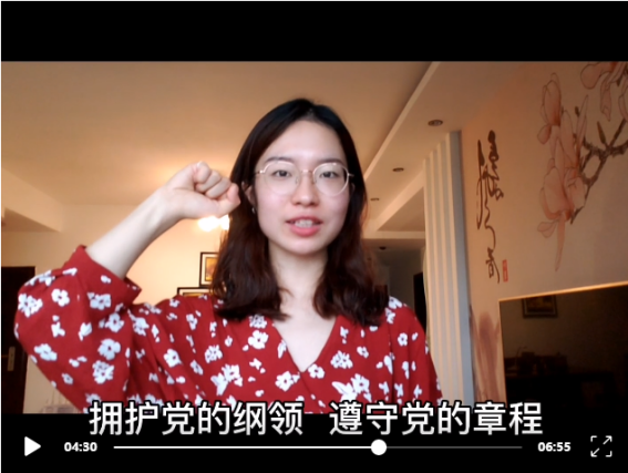 由于疫情,支部所有党员无法集中宣读誓言,筹备主题党日时,学生党员易树德想到大家可以在各自家中重温誓词,重读志愿,支部所有党员迅速响应。在全国各地,举起右手光荣的宣读入党誓词和入党志愿。家中没有党旗,那就在电脑屏幕上放大党旗的图片,没有条件那就创造条件。在这火红的7月,学生党员们通过自觉重温誓词和志愿来回顾入党时的庄严承诺,时刻提醒着自己所肩负的重要责任,不断强化对我党的忠诚及对共产主义事业的不懈追求,坚守初心,不负使命。