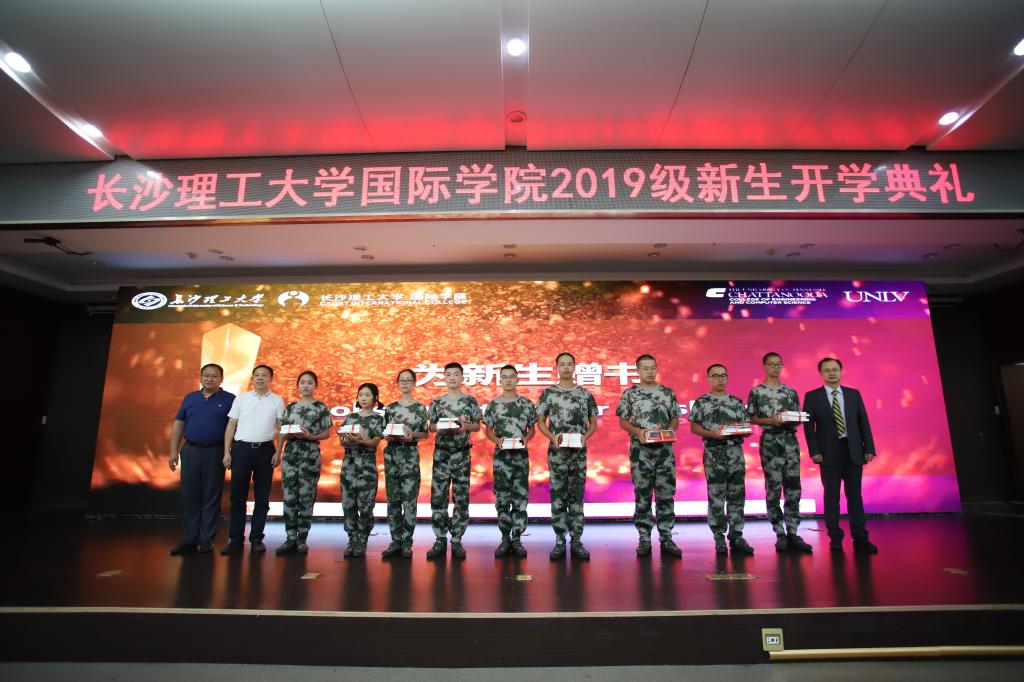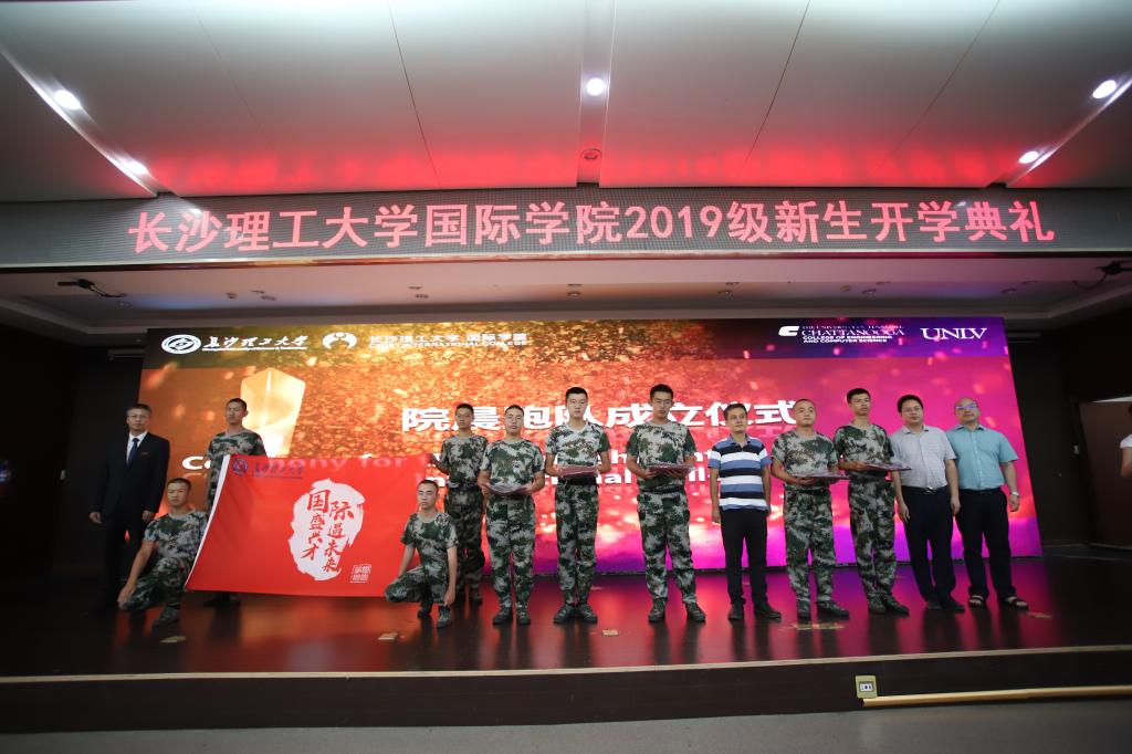 在本次开学典礼中,国际学院还举行了晨跑队成立仪式,副校长蒋昌波为晨跑队授旗。交通运输工程学院副院长何忠明、土木工程学院副院长陈伏彬、电气与信息工程学院副院长唐欣为新生代表赠送队服,鼓励学生在运动中增强体质、锤炼意志、培养奋斗精神。