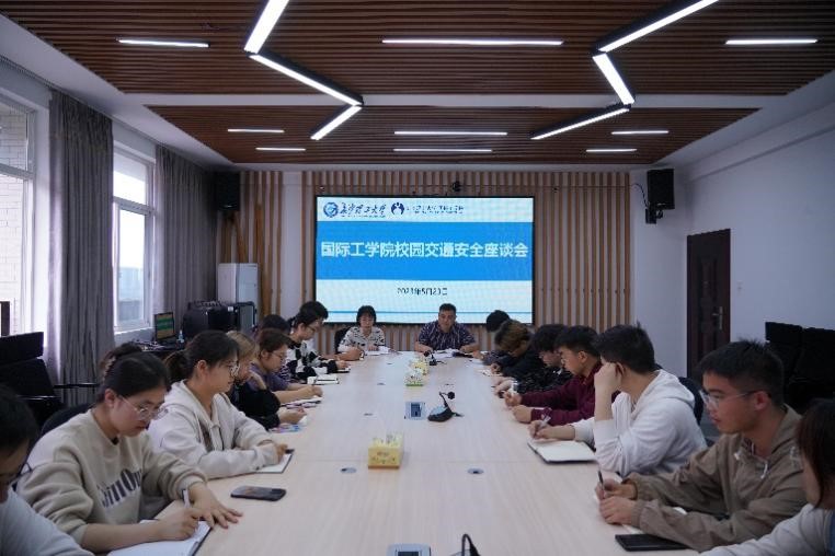 5月23日下午,国际工学院开展校园交通安全座谈会。学院党总支副书记兼副院长乔法光、团委书记马玉文、团委学生会学生干部代表、各学生党支部党员代表参与此次会议,会议由马玉文主持。