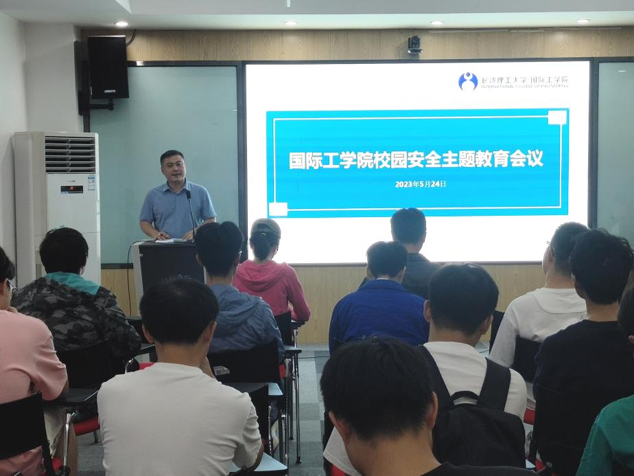 5月24日晚,国际工学院召开校园安全主题教育会议。学院党总支副书记兼副院长乔法光、辅导员魏涛、全体班长参与此次会议,会议由魏涛主持。