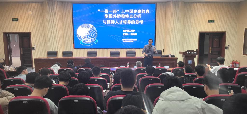 在我国坚定不移推进新型经济全球化的形势下,如何成长为合格乃至优秀的国际工程人才,为我国深度参与全球交通基础设施互联互通建设提供人才支撑?4月30日上午我院邀请拥有丰富海外工程建设项目经验的资深桥梁专家田仲初教授,为我院学子进行了题为“一带一路上中国参建的典型国外桥梁特点分析与国际人才培养的思考”的学术讲座。讲座由我院副院长彭晖教授主持,土木工程学院陈历强老师以及土木中外合作办学项目2021、2022级学生参加了讲座。