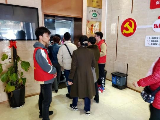 国际学院的七位志愿者抵达活动现场后便帮助社区完成PPT及音响设备调试、搭建展板、向来往居民宣传专家义诊、协助社区工作者进行场地布置等工作。为帮助前来参加讲座的行动不便、不了解场地布置的老年人,国际志愿者们主动等候在电梯前,随时准备将爷爷奶奶带入电梯,并引导进入会场、签到落座。活动尾声,国际志愿者协助维持医生义诊时现场的秩序。整场活动中,国际志愿者们的“红色马甲”出现在场地的各个角落,充分地彰显了国际青年对为人民服务、进行社会实践的热情。