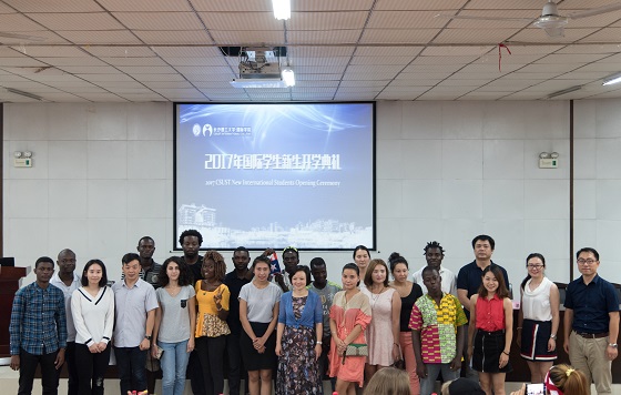 9月14日下午,国际学院在文科楼圆厅A100隆重举办2017年国际学生新生开学典礼。国际学院院长陈瑜、院党委副书记兼副院长吴振华、国际交流处办公室主任杨欣、学院党政办公室黄文卫,学院留学生办公室全体老师以及来自俄罗斯、蒙古、哈萨克斯坦、孟加拉、老挝、印度、也门、阿尔巴尼亚、吉尔吉斯、巴基斯坦、坦桑尼亚、贝宁、格林纳达、利比里亚、布隆迪等二十多个国家已经报到入学的36名留学生出席了典礼。典礼由留学生办公室王荟惠老师主持。