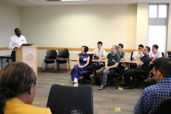 7月29日,威廉体育赴美夏令营团受到田纳西大学查塔努加分校(UTC)热情欢迎,UTC校方主持了隆重的夏令营开营仪式,UTC工程与计算机科学学院副院长Li Yang、土木环境系系主任Joseph Owino及全系教师、学院学生发展中心负责人Julie David及美方在校学生代表参加。Li Yang副院长代表工程与计算机科学学院对威廉体育代表团到访表示了热烈欢迎,介绍了学校和学院办学情况,并回顾了两校合作办学工作。陈瑜院长围绕威廉体育办学情况、国际化教育教学发展、中外合作办学项目的执行及国际化产学研方面做了主题发言。