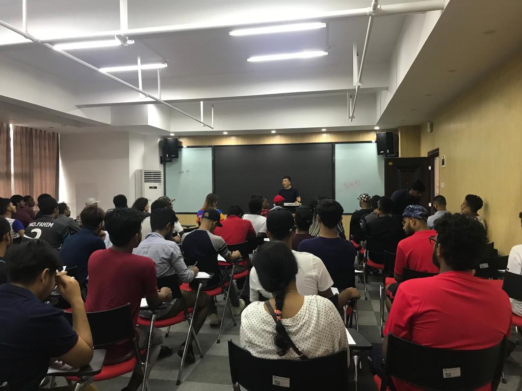 会上,国际生管理办公室王荟惠老师针对暑假留校期间的安全问题召开专题讲座,教育学生注意防火、防盗、防溺水、注意交通安全及饮食卫生等问题;要求同学们严格遵守中国法律法规、尊重中国社会习俗、遵守学校规章制度,及时办理签证延期及住宿登记,做好自身安全防范工作。