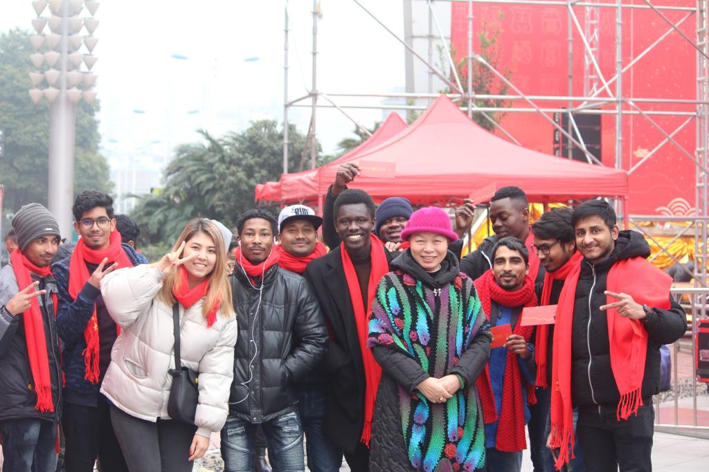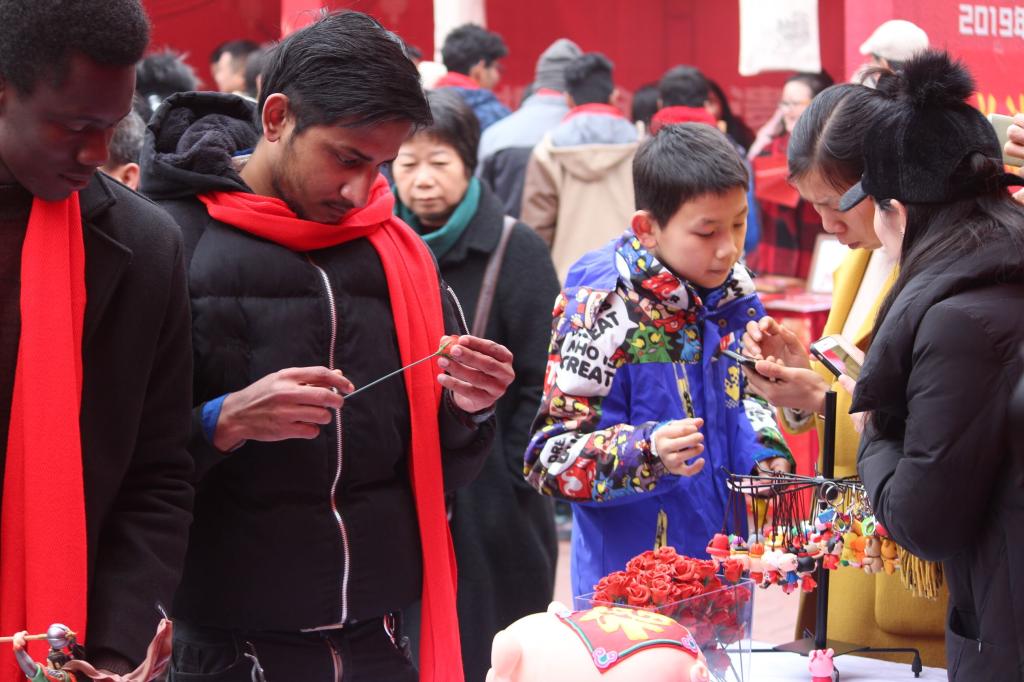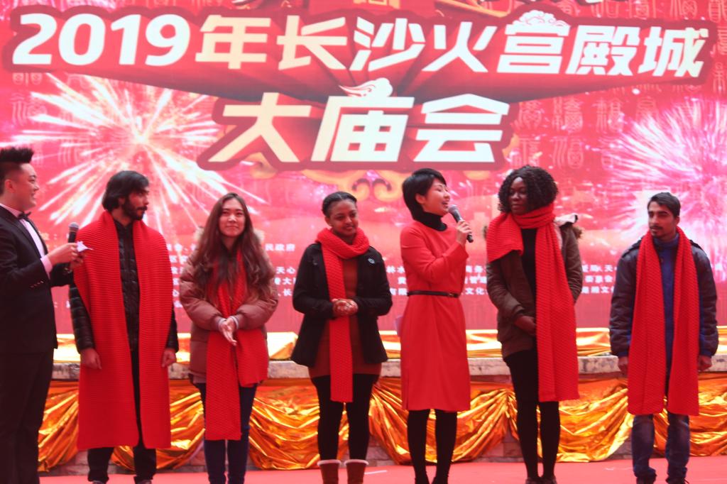 为了提高留学生对中国传统新年文化的认识,丰富留校留学生的寒假生活,1月29日,国际学生工作办公室连同学院留学生钩编技艺培训班欧沛琼老师,组织二十余名分别来自10个国家的留学生与天心区其他代表一起参加由中共长沙市天心区委员会、长沙市天心区人民政府主办的“快乐长沙—璀璨天心”2019年长沙火宫殿城大庙会活动。
