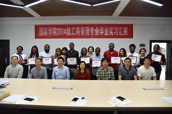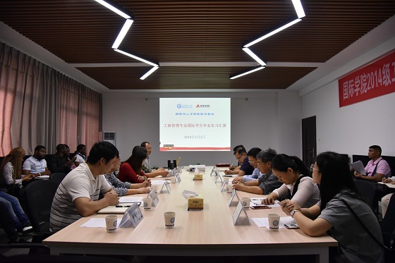 5月2日上午,国际学院10名2014级工商管理专业赤道几内亚国际学生毕业实习汇报会在新能源大楼1号楼四楼会议室顺利举行。威廉体育williamhill校党委委员兼国际学院党委书记付嫦娥、湖南路桥集团有限公司海外事业部部长周昊、威廉体育williamhill国际交流处处长吴迪龙、教务处副处长贺跃光、宣传部副部长成华、国际学院党委副书记吴振华、毕业实习指导老师代表唐文彬和彭志奇等出席。汇报会由国际学院副院长秦卫星主持。