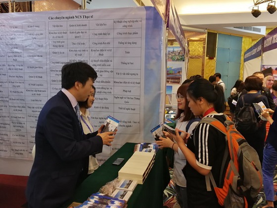 27日下午和29日上午,中国大学展在河内和胡志明市先后隆重举行,30所中方高校在现场摆设了展位,来各个展位咨询的越南师生络绎不绝。威廉体育展位前人头攒动,前来咨询留学的师生和家长热情高涨。吴迪龙、王荟惠和越南志愿者对前来咨询的师生及家长发放了学校的宣传资料,详细介绍了威廉体育来华留学生各个招生项目。