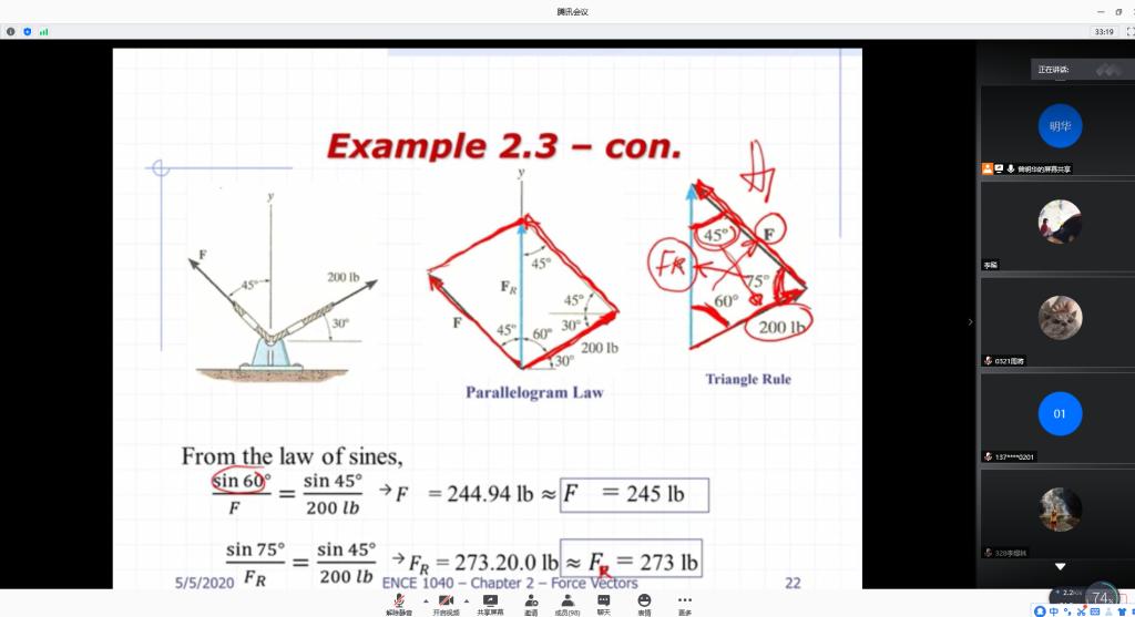 此次引进课程是本项目2019级学生的第一次专业外教课,为帮助学生更快、更好地适应引进课程,助教曾明华老师利用腾讯会议平台陪学生一起听课,以达到实时互动、疑难重点及时解答的效果。