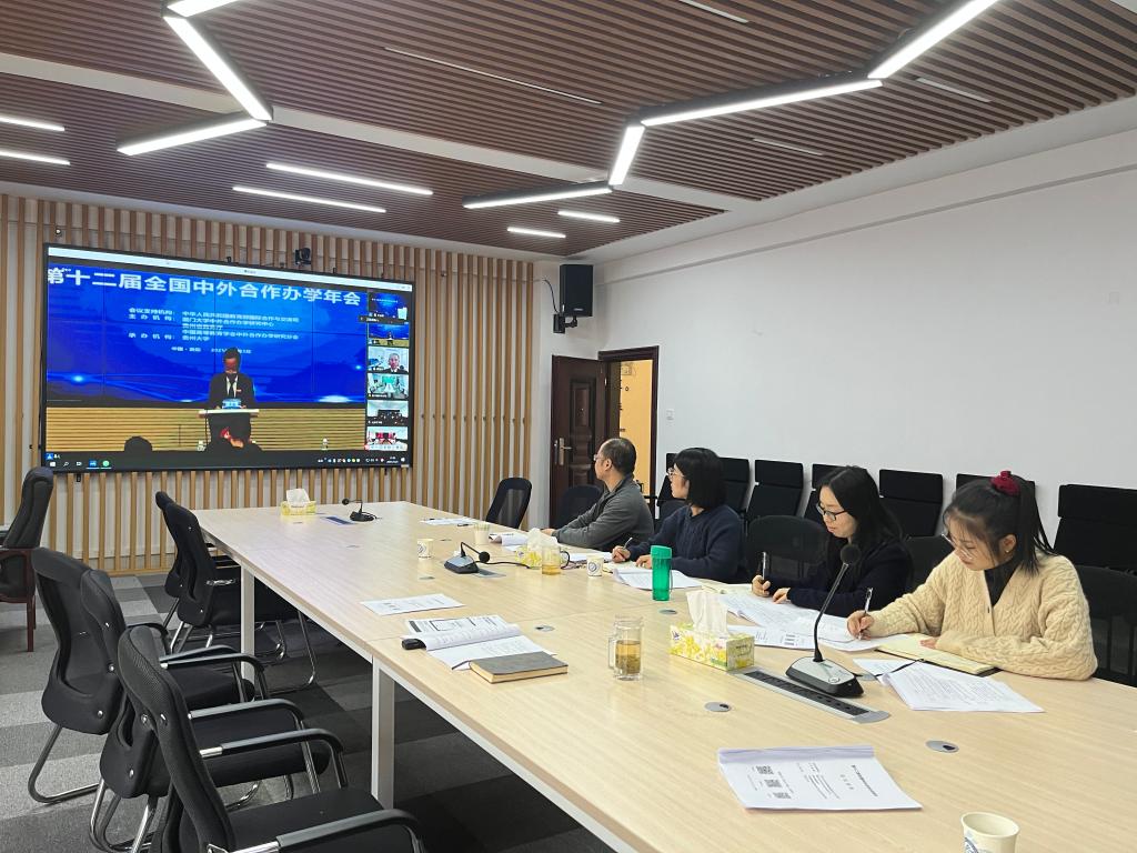2021年12月3日,第十二届全国中外合作办学年会在线上举行。年会由教育部国际司为会议支持机构,厦门大学中外合作办学研究中心、贵州省教育厅、中国高等教育学会中外合作办学研究分会共同主办,贵州大学承办。国际学院院长吴迪龙、副书记兼副院长乔法光、副院长秦卫星、党政综合办公室主任黄文卫以及教务办全体老师参加年会。本次年会主题为“世界大变局下的中外合作办学:以高质量发展助推新发展格局构建”。