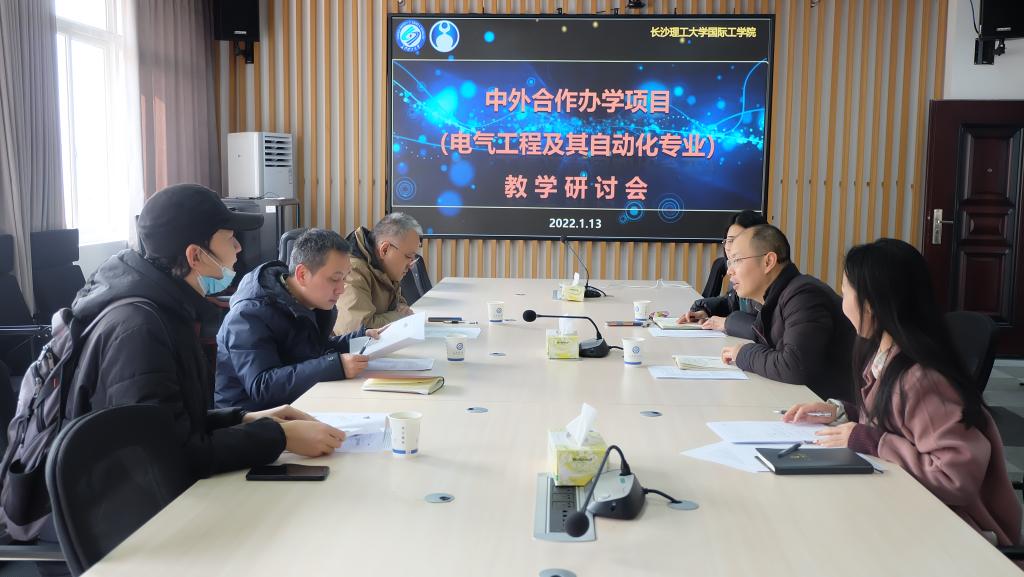1月11日下午,国际工学院教务办在新能源大楼1栋416会议室顺利召开中外合作办学项目(电气工程及其自动化专业)2022年春季学期引进课程教学研讨会。电气与信息工程学院副院长唐欣教授、优秀骨干教师何青副教授与新进教师时一斐博士,国际工学院副院长秦卫星、教务办相关老师参加会议。会议由项目秘书文可可主持。