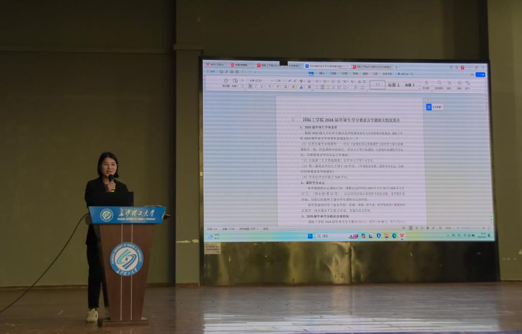 首先,罗帅就项目2020级学生毕业条件、学分修读整体情况、课程学分认定及学籍信息确认等内容做详细介绍,提醒大家对照进行学分自查并密切关注考试报名时间节点、考试安排、学分修读进度等重要事项。随后,余志介绍了2024届毕业生的毕业设计(论文)分流情况和目前进度,明确各环节时间节点,并再次强调学术诚信的重要性。唐宏敏介绍毕业各项学生工作安排和就业工作推进安排,并开展了防电信诈骗等安全教育。