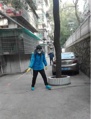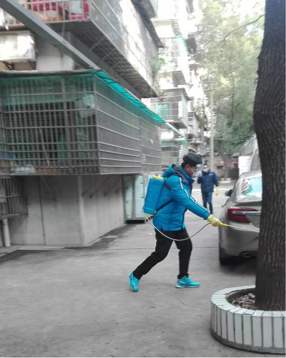 他的任务是“撒药”。“撒药”两个字,看似轻松,实则非常辛苦。首先,背着的药水桶就有几十斤,在没有其他人或者工具的帮助下,要背起来都困难。其次,喷药过程也不轻松。背着药水要喷洒近一个小时,并且药水的量是一定的,要保证社区 每一处都喷到位,着实是个技术活。李治平说像他这样的志愿者有很多,他们都在用自己的行动守护每座城市、守护自己的家园。
