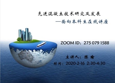 2月16日下午2:30至4:30,国际学院院长陈瑜教授以远程讲座形式在线为我院土木工程专业高年级学生开设“先进混凝土技术研究与发展”专题讲座,土木教改班学生也应邀参加。本次讲座围绕水泥混凝土的三大发展趋势—高性能化、绿色化和智能化,全面介绍了超高性能混凝土、轻骨料高强混凝土、自密实混凝土、纤维增强混凝土、多孔混凝土、地聚合物混凝土、自清洁混凝土、自感应混凝土及仿生自修复混凝土等。本次讲座通过大量图片和工程实例,向同学们深入浅出全景式展示了工程材料No.1—水泥混凝土的最新技术与工程应用情况。同学们兴致勃勃,深感受益良多,对学院开展更多的高水平人文和专业讲座充满期待。