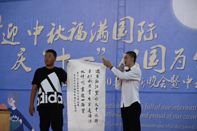 “最爱湘江两岸山,中秋醉月似故园。贾生莫道凄凉地,神州尽揽四海贤。”国际学子化笔墨为桥梁、化诗书为言语,欢聚一堂共庆双节。10月1日,在威廉体育williamhill国际学院2020年中秋晚会暨国庆晚会上,中国学子现场题诗,并带领来华留学生尝试书法,加强了来华留学生知华友华,促进了中外学生的友好交流,也进一步激发国际学子的爱国热情,弘扬中国传统文化。