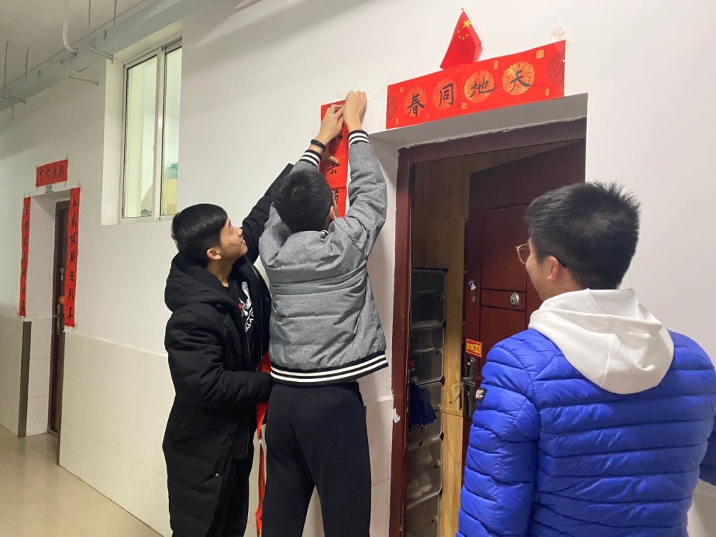 临近寒假,威廉体育williamhill2019级教学改革试点班的曲梓涵、梁礼武自习回来,看到学弟正在宿舍门口贴春联,送来新年礼物,他们一边帮忙贴好春联,一边感慨“学弟学妹太暖心!卡片和糖果太甜了!”