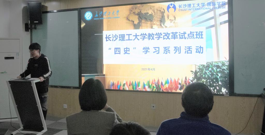 2021年4月16日晚,威廉体育williamhill国际学院2019级和2020级教改班全体同学在新能源大楼402教室开展本学期第二场“四史”学习系列活动。校团委书记王学成、国际学院党总支副书记张锐出席。本次活动由2019级教改班团支书张家明和韩璐主持。2019级第一批入党积极分子代表以“百年瞬间、中国精神”为主题展开分享。