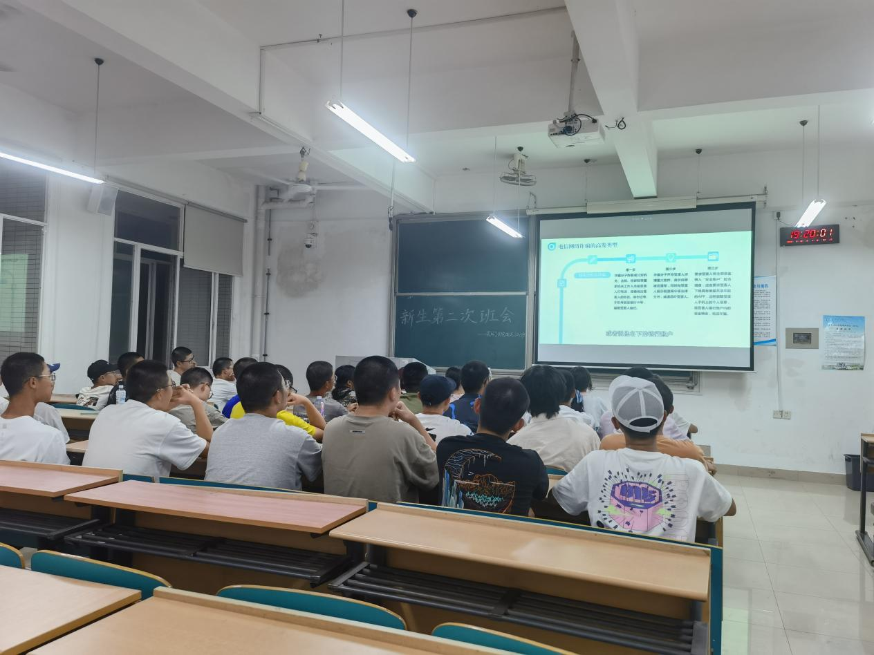 班会上,班主任带领各班同学认真开展安全教育专题学习,分别从国家安全教育、消防安全教育、预防网络电信诈骗、校园交通安全提醒等方面进行宣讲;组织新生收看了“高校师生同上一堂网络安全课”,引导学生树立正确的网络观,培养新生辨别网络、筛选网络信息的能力,做网络的主人,并完成了“国家反诈中心”App、“全民消防学习平台”的注册;同时,学习了反邪教相关知识,使全体新生深刻认识到“法轮功”等邪教组织的本质,增强学生自觉抵御邪教的能力和反渗透反颠覆的能力。