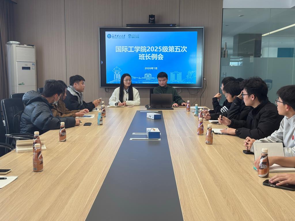 为推进班级管理,加强期末安全教育和诚信考风建设,强化人文关怀,1月14日,国际工学院于文科楼E502召开2025级第五次班长例会。年级辅导员魏涛、熊英,全体班长、年级组成员参加会议。