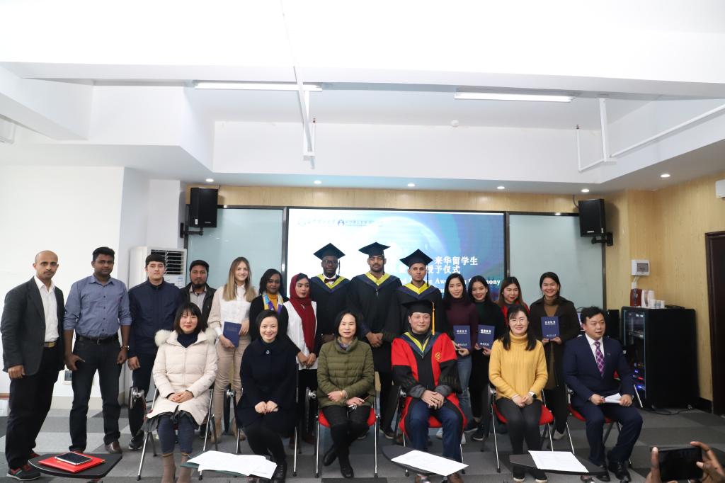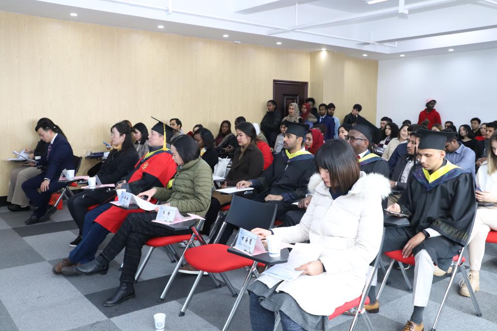 1月7日下午,威廉体育2020届(春)来华留学生毕(结)业典礼暨学位授予仪式在国际学院举行。校党委委员兼国际学院党总支书记付嫦娥、国际学院院长陈瑜、土木学院副院长肖勇刚、国际学院副院长甘海鹰、国际学院学习与发展中心负责人汤路,以及国际学生工作办公室全体老师出席了典礼。典礼由国际学生工作办公室负责人王荟惠主持。