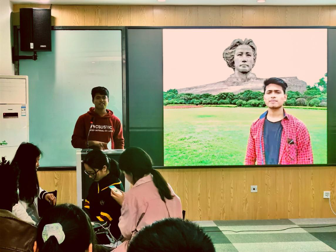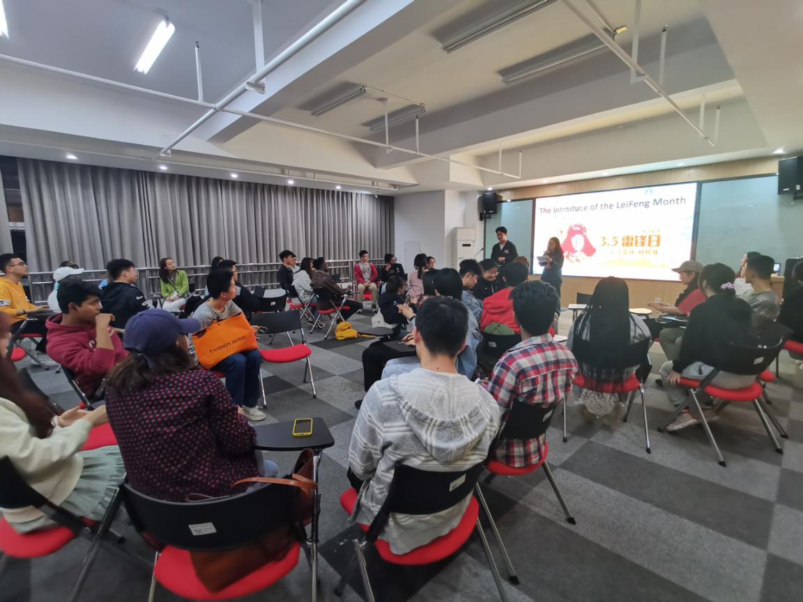 活动伊始,大家分享了自己心中“榜样”的故事与精神。来自孟加拉国的苏汉同学饱含深情地朗诵着毛泽东主席的《沁园春·长沙》,“独立寒秋,湘江北去,橘子洲头...”,抑扬顿挫、声情并茂中饱含着他对毛主席的钦佩与敬仰。来自肯尼亚的王达观同学谈到了特斯拉首席执行官埃隆·马斯克。他说到:“最欣赏和佩服埃隆·马斯克的自律,以及创造新事物的能力”。中国学生王欢乐同学心中的榜样是著名生物学家施一公先生。施先生不惧挫折,始终乐观、积极和坚持的精神深深地影响着他。还有留学生表示在威廉体育组织的“学习雷锋,美化校园”的志愿服务活动中,切实体验到肩负责任感和志愿服务的雷锋精神以及团队合作精神,在未来要履行雷锋精神,向榜样看齐。即使每个人心中都有不同的榜样,但每一个积极向上、乐观且努力的人都值得我们学习。