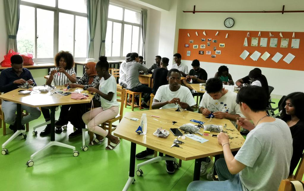 在活动上,汉语教研室李璐老师首先为留学生们介绍了端午节的起源以及习俗。听完关于屈原、粽子、赛龙舟的讲述,留学生们对端午节有了更深入的了解。随后他们拿起丝线,在老师的带领下学习缝制端午特色——五彩香囊。留学生们制作的香囊形态各异,虽然他们的线条歪歪扭扭,但绣出了节日的祝福以及对中华文化的热爱。