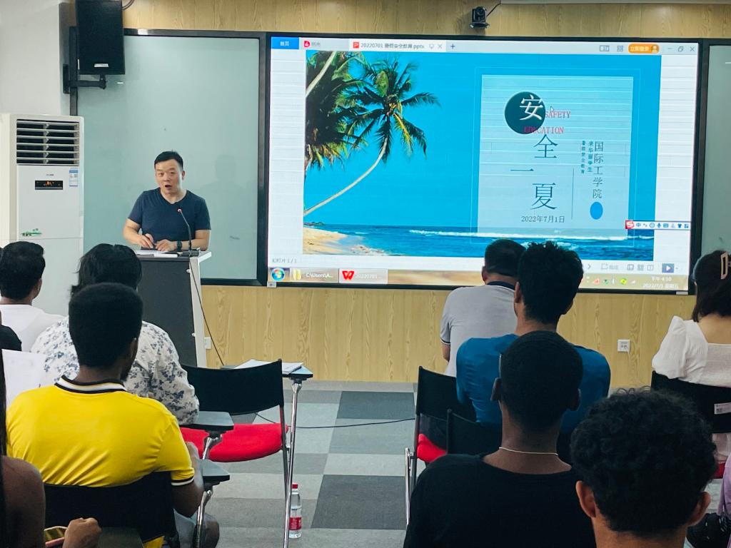 为进一步做好留学生假期教育管理及服务工作,筑牢安全防线,7月1日下午,国际工学院在新能源大召开了2022年来华留学生暑假安全教育大会。国际工学院党总支副书记兼副院长乔法光及留学生工作部全体工作人员出席会议,会议由王荟惠主持。