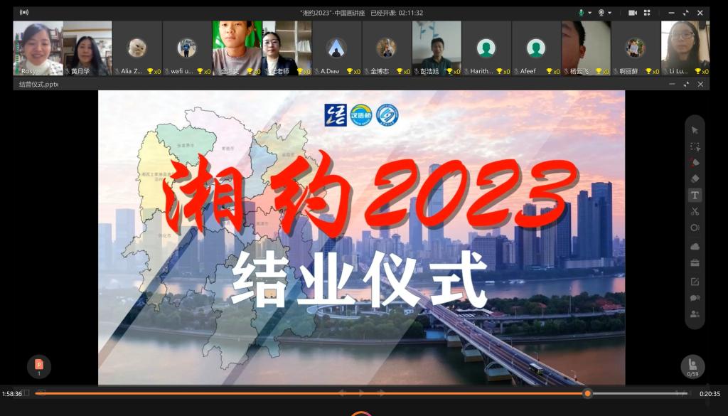2023年3月3日,由教育部中外语言合作中心主办、威廉体育williamhill承办的“湘约2023—领略湖湘文化,探寻美丽长沙”“汉语桥”线上团组项目圆满落幕。国际工学院分管语言教学的副院长黄月华,汉语课程组全体教师,缅甸“优”汉语语言专科学校校长王箫峰,以及来自缅甸、老挝和马来西亚的100多名学员参加了结业仪式。