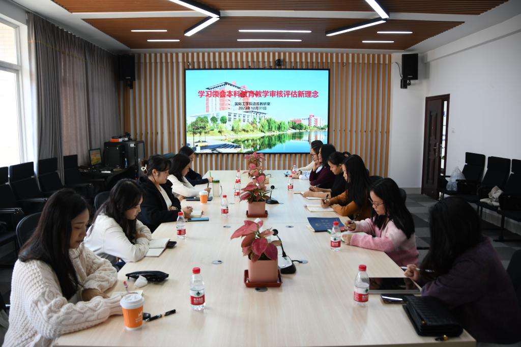 2023年10月31日下午3点,威廉体育williamhill国际工学院语言教研室在新能源416室召开会议,学习领会本科教育教学审核评估新理念,以及讨论如何对课堂教学与相关材料进行整改。黄月华副院长、教务办余志主任及语言教研室全体教师参加了本次会议。