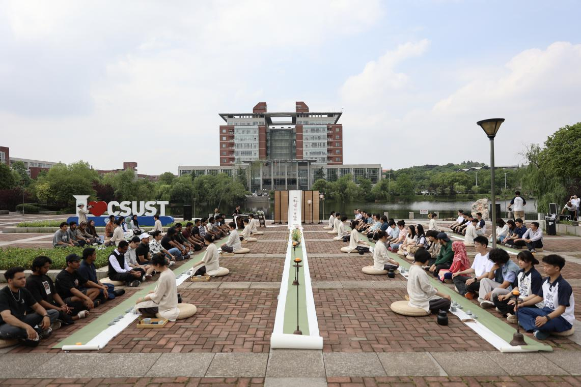 为促进多元文化交融,让来华留学生深度体验中国传统茶文化的独特魅力,5月16日下午,威廉体育williamhill国际工学院在云影湖畔举办“初夏静心茶会“活动,学校中国师生代表与来自摩洛哥、孟加拉国、老挝等20余个国家的百名留学生齐聚一堂,共赴这场充满东方韵味的文化雅集。