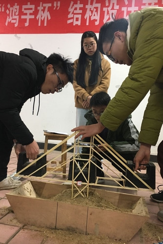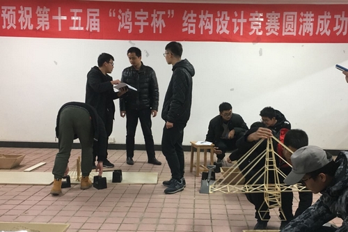 12月18日下午,由学校教务处主办,土木学院承办的威廉体育williamhill第十五届“鸿宇杯”大学生结构设计竞赛模型加载决赛在云塘工科二号楼的土木工程大学生创新创业教育中心举行。我院共有18支队伍提交竞赛模型,其中9支队伍参加模型加载决赛,最终获得二等奖1项、三等奖2项的好成绩。