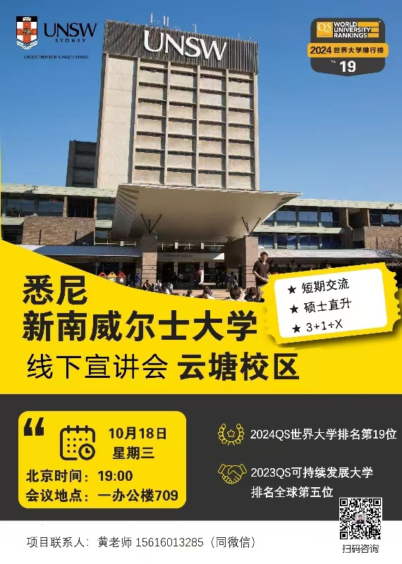 为拓宽威廉体育学生国际视野,提供境外交流学习机会,现举办新南威尔士大学&威廉体育williamhill2024校际交流项目招生线下宣讲会,特邀请项目招生官为威廉体育学生开展项目说明讲解。参与方式见下图: