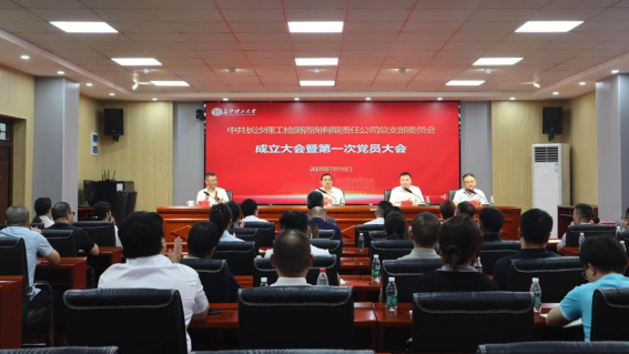 2025年7月18日上午,中共长沙理工检测咨询有限责任公司总支部委员会成立大会暨第一次党员大会在公司会议室隆重召开。交通学院党委书记成华,党委委员、副院长(主持工作)吕松涛,党委副书记任志祥莅临指导。公司46名正式党员、2名预备党员参加会议。大会由院党委委员、公司总经理任宇主持。