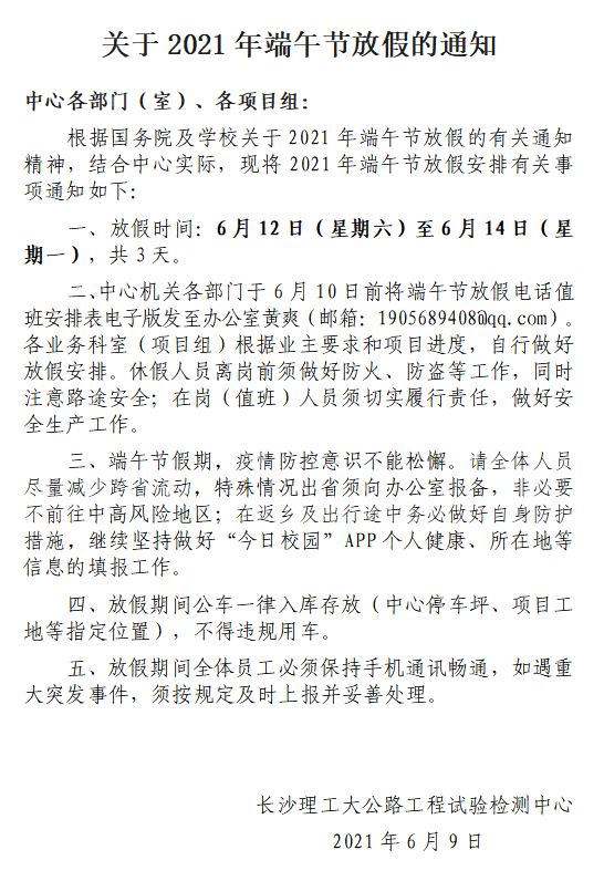 上一条:关于2021年中秋节和国庆节放假的通知 下一条:关于2021年劳动节放假的通知
