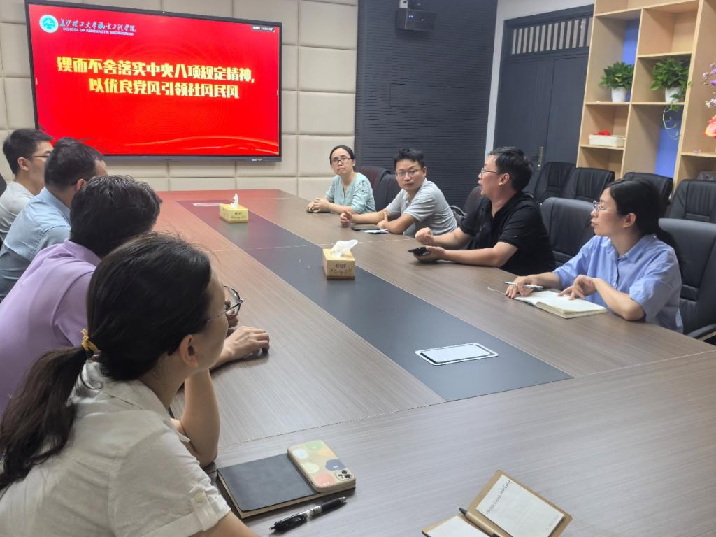 随后,在交流研讨环节,与会党员教师结合自身岗位职责,畅谈学习体会。大家一致认为,作为身处教书育人一线的高校教师,必须时刻绷紧作风建设这根弦,将落实中央八项规定精神融入日常、抓在经常。周访滨老师谈到,要在课堂教学中融入廉洁教育,引导学生树立正确的价值观;张龙其老师表示,要严格遵守科研经费管理规定,营造风清气正的学术环境;综合办公室侯倩同志提出,要持续改进工作作风,力戒形式主义、官僚主义,提升服务师生效能。发言紧密联系工作实际,充分展现了支部党员深化思想认识、主动担当作为的决心。