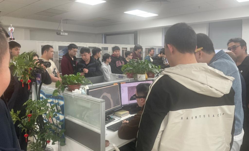 在调查监测中心,湖南省第二测绘院董胜光总经理、文志军工程师及相关负责人向同学们详细介绍了单位的基本情况、主要业务及发展方向。围绕“天空地网”综合监测体系的建设与应用,院方技术人员重点进行了“铁塔哨兵”系统的演示汇报,介绍了该体系在自然资源调查、地质灾害监测等领域的实际应用效果。学生们积极提问,围绕监测技术细节、项目实施流程等内容展开热烈讨论,展现出良好的专业素养与学习热情。