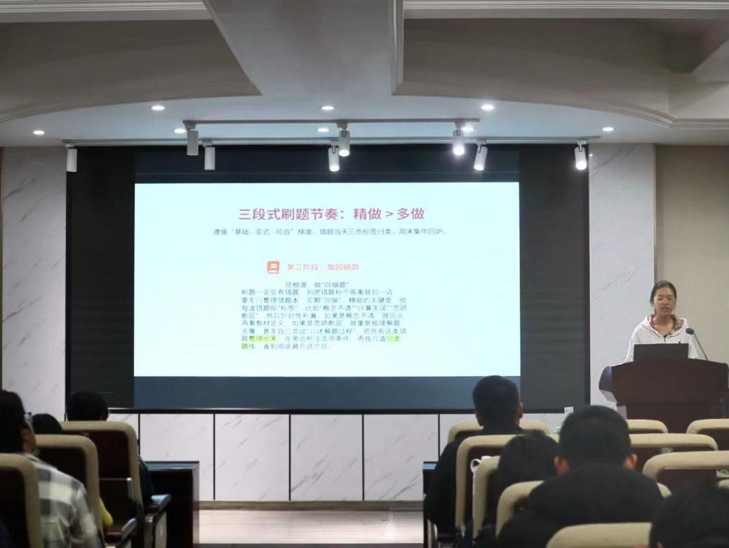 分享环节中,戴翌婷同学精准列举高数学习中的常见通病,结构化梳理核心学习方法,还分享了个人笔记与学习心态调节经验,并推荐优质学习资料;宾芬同学详细拆解自身高数学习方法,给出“重视计算基础、避免孤立做题”的避坑建议,总结出“读中学、问中学、动中学、练中学”的学习经验;杨瑞同学以《高数经验分享:大一不踩坑》为主题,阐明高数学习的重要性,强调以三段式刷题节奏实现“精做”的核心原则,还分享了考前冲刺的复习方案。