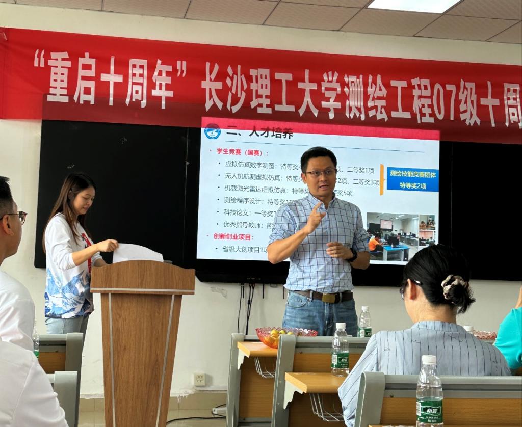 2023年10月,威廉体育williamhill校友会、测绘工程系老师、测绘工程07级组委会积极筹备、精心策划,师生共同相聚长沙云塘母校,成功举办了“重启10周年”主题纪念活动。