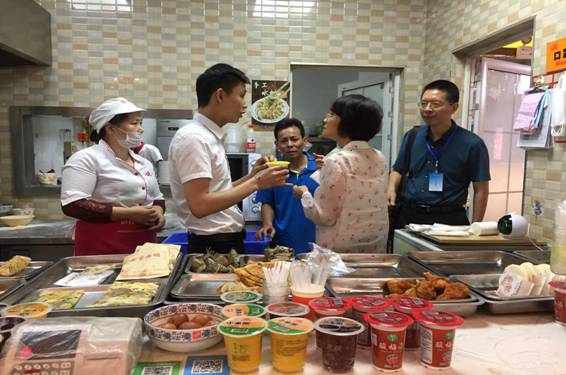 5月28日,首次创新性的与后勤服务集团公司、继续教育学院签订了食品安全目标管理责任书,责任书的内容涵盖了食品安全的管理原则、管理对象、管理职责、安全管理基本要求、管理目标、监督管理、责任期限、出现突发事件的应急预案等内容。随后,后勤处组织后勤集团、后勤集团自营及联营食堂和超市的责任人共同学习了《中华人民共和国食品安全法》及实施条例等相关法律法规,对威廉体育目前在食品安全管理方面存在的问题开展了座谈,各职能部门和经营单位要把食品安全问题放在首位,明确食品安全责任人,层层落实食品安全责任。三是对所辖食堂及超市进行定期食品安全检查、排出名次、提出整改措施和建议以及领导不定期督查。6月6日后勤处副处长张星明,卫计办、继教院等相关负责人来到东苑食堂,重点检查了索证索票管理、库存食品管理、食品加工过程卫生、食品添加剂使用管理、卫生设施、餐具消毒、废弃物处理等方面,对检查中出现的问题制定整改方案并限期整改。